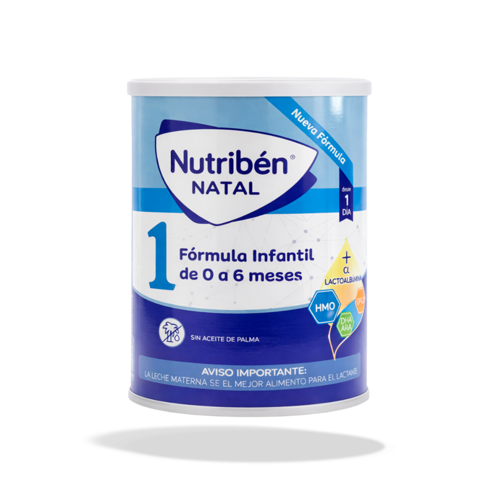 Nutribén NATAL está formulada para satisfacer las necesidades nutricionales de los lactantes desde el primer día hasta el sexto mes de vida. Contiene una exclusiva formulación que incorpora HMO 2´fucosil-lactosa (2´FL) oligosacárido más abundante de la leche materna que fortalece el sistema inmune, promueve una microbiota más saludable y es el que tiene mayor evidencia científica. Con α–lactoalbúmina proteína mayoritaria de la leche materna haciéndola mucho más fácil de digerir y reduciendo problemas gastrointestinales comunes. DHA:AA en una relación 1:1 de acuerdo con la recomendación pediátrica que contribuyen al desarrollo del sistema nervioso central y al sistema cognitivo del bebé y BPL1® HT Posbiótico que equilibra la composición corporal. Sin azúcares artificiales añadidos, fomentando hábitos alimenticios saludables desde el primer día y sin aceite de palma que la convierte un fórmula segura.